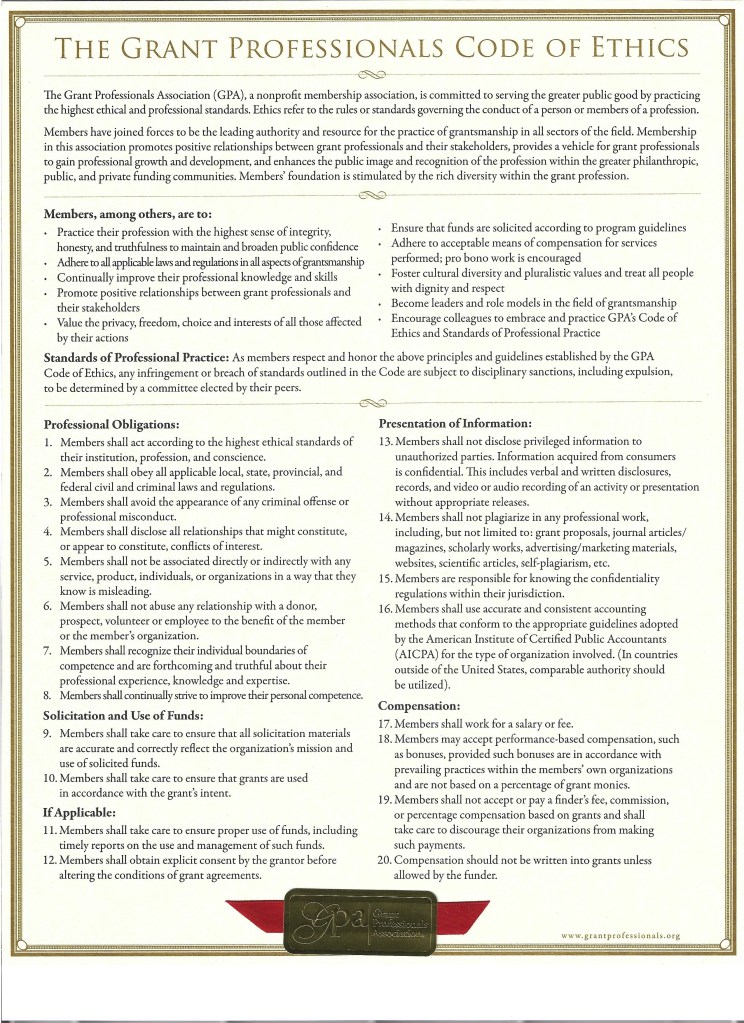 I strictly adhere to The Grant Professionals Code of Ethics shared below. Contact me if you’d like to learn more.